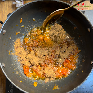 - Put a lid and let it cook until tomatoes are properly cooked and oil is seen separating.