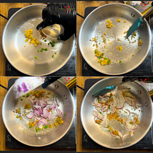 - Add onion and cook till turns translucent.