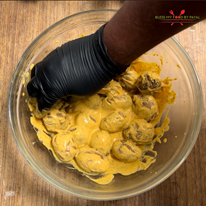 - Mix them well so that batter is coated to the potatoes. Rest 15 minutes.