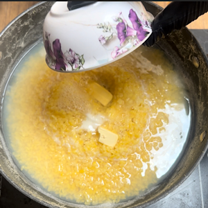 - Take a serving bowl and firstly put a cube of butter.