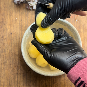 - Don't take too small potatoes. They are likely to break while scrapping.