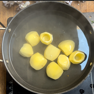 - Boil these potatoes for 4 minutes with a pinch of salt in water.