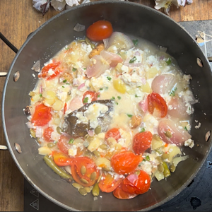 Scoop out the middle of each potato using a peeler or small knife or back side of spoon. Be careful not to break the tomato shell and do not make the hole at the bottom of potatoes.