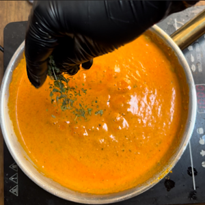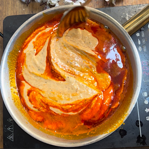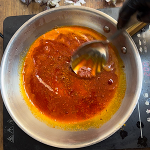 When it begins to boil, add kasuri methi and mix. Gravy for Bharwan Aloo is ready.