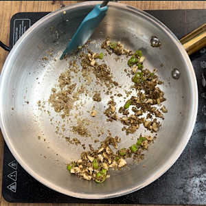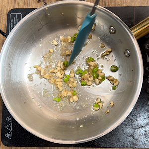 - Add ginger, green chilies and cashews.