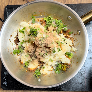 - Add boiled and mashed potatoes.