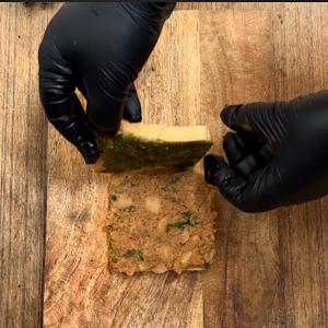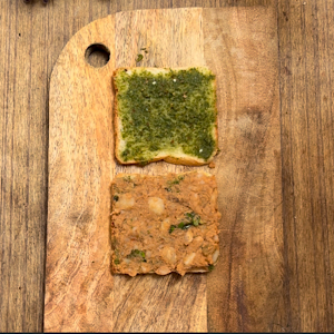 - Place another slice of bread, facing chutney side to stuffing, making it a sandwich.