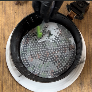 Before going further, prepare the air fryer basket by arranging butter paper (with holes done with toothpick) in an air fryer basket and grease it with oil.
