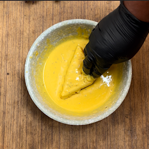 - Now dip the sandwich in batter from both the sides.