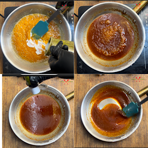 • Remove from the heat and let the caramel cool down completely. After cooling it will thicken more.