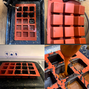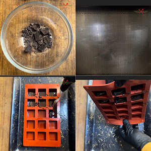 • Lift and rotate the mould here and there so that Chocolate gets coated on all the four sides of the mould.