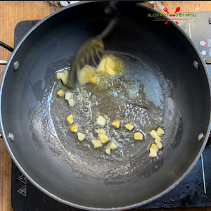 Take oil and butter in a pan and let butter melt. Add garlic and saute for a minute. Don’t let it turn brown.