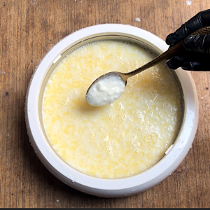 Here’s above, the prime reason people don’t make ghee from curd inspite of knowing about this process. After churning a huge quantity of curd which will take 15-20 minutes, what you are going to get is almost none. So it is neither physically nor economically convienent.