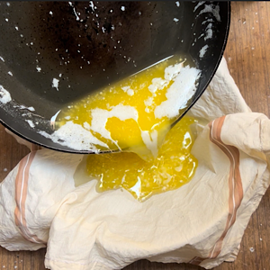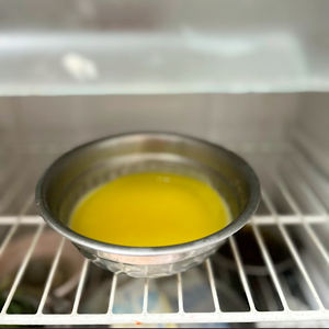 • Though ghee is made but still it has some traces of buttermilk and to remove that, place the ghee in refrigerator until ghee is set.