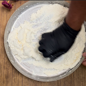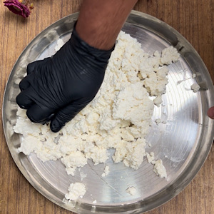 - Start mashing chenna using the base of your palm.
