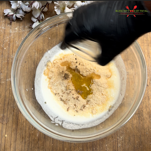 - Take curd in a bowl and add baking soda. Mix.
