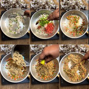 - Add boiled quinoa and lemon juice.
