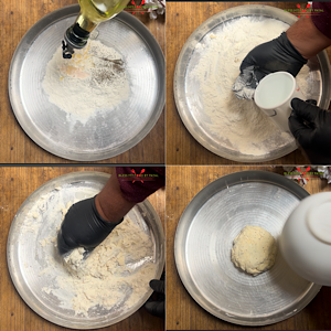 - Add carom seeds, salt and oil in all purpose flour. Mix.