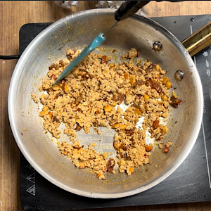 Cook on low heat and let the paneer dry up completely. Keep aside and leave to cool down completely.