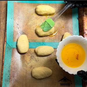 • Arrange on baking tray lined with greased butter paper or silicon mat and brush the saffron water over the top of each Tootak.