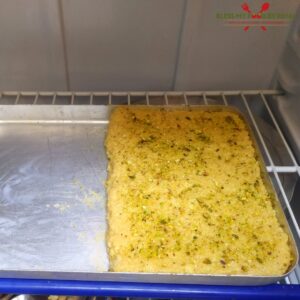 - Garnish with pistachios and tap them so that pistachios stick to the surface of mixture.