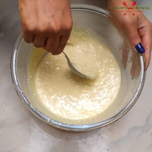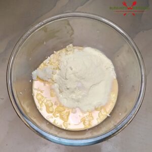 - Take a microwave safe glass bowl. Make sure this bowl must be big in size especially height because while cooking, mixture booms upto the top.