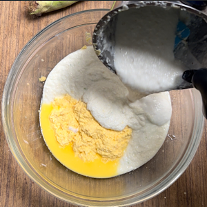 - Transfer this rice paste too in the bowl carrying corn paste.