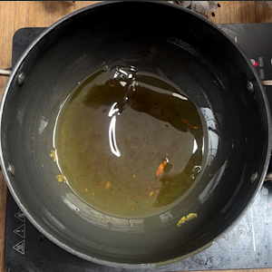 Remove excess oil from the pan leaving behind 1 tbsp.