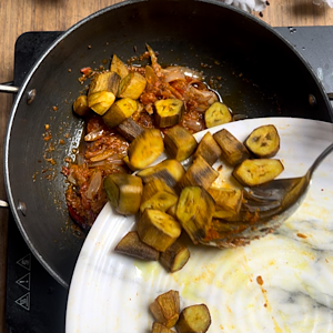 - Remove excess oil from the pan leaving behind 1 tbsp.