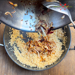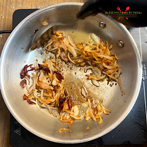 Cook until onion turns brown. Add dry red chilies and saute for 15-20 seconds.