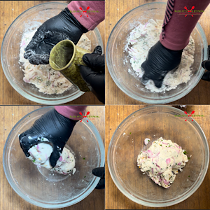 - Mix it by pressing the onion so well that it releases it's flavour and moisture.