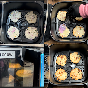 - Open the air fryer, turn the sides of vadas and again brush oil on the top.