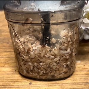 - Wash and thinly chop mushrooms in chopper. If you don't have chopper, you can chop them with knife.
