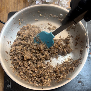 Put the heat on high and start stirring it. Mushrooms will release water. Keep cooking.