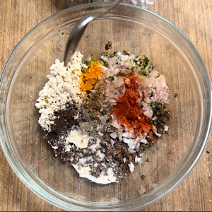 - 1/2 cup/100 grams firm tofu (pressed & crumbled)