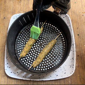 Put them in greased air fryer basket and apply oil on it. If you don’t have air fryer, you can grill them in oven or even directly on gas stove over grill rack.