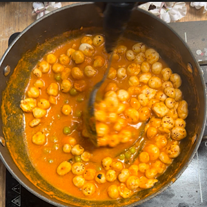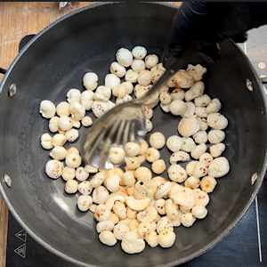 • Saute on low heat for 7-8 minutes or until lotus seeds turn crisp.