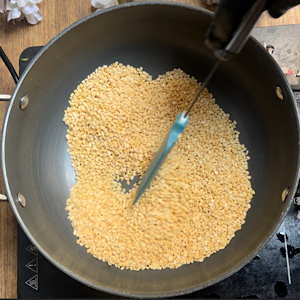 - Dry roast for 8-10 minutes or until dal turns slightly brown.