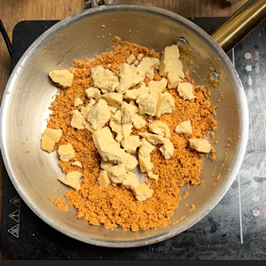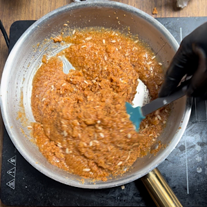 - Mix it well by mashing and mixing khoya. It needs just 5 minutes cooking, only until khoya completely melts.