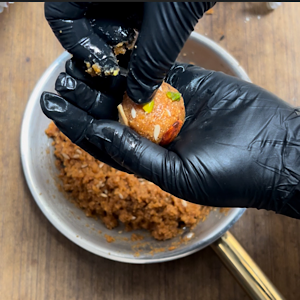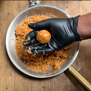 - Take some portion and start rolling it into round pinnis. Pinnis will be able to make out only when the mixture is slightly warm.