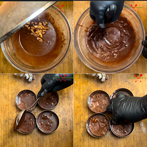 Add walnuts and mix. Divide the batter in greased steel katoris. Top with a piece of chocolate.
