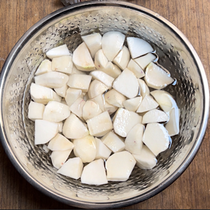 • Peel and cut turnip in pieces and put in water. Water will wash them away and also prevent them from fainting.
