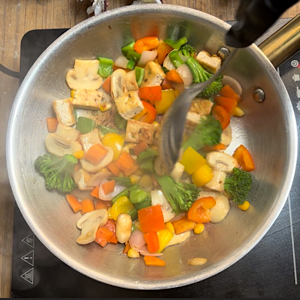 - Saute on high heat for a minute or two. Don't let the veggies lose their crunch.